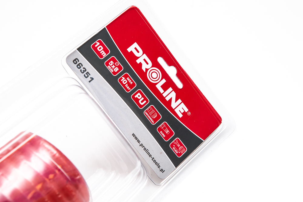 Spiralny wąż pneumatyczny marki Proline jest niezbędnym narzędziem do pracy z każdym kompresorem. Wąż wykonany jest z poliuretanu który cechuje się dużo większą elastycznością niż polietylen. Idealnie nadaje się do pistoletów lakierniczych, do przedmuchiwania, do mycia i innych narzędzi pneumatycznych. Wąż wyposażony został w szybkozłączki, co pozwala na podłączenie do niego każdego urządzenia pneumatycznego. Maksymalne ciśnienie robocze 10bar.