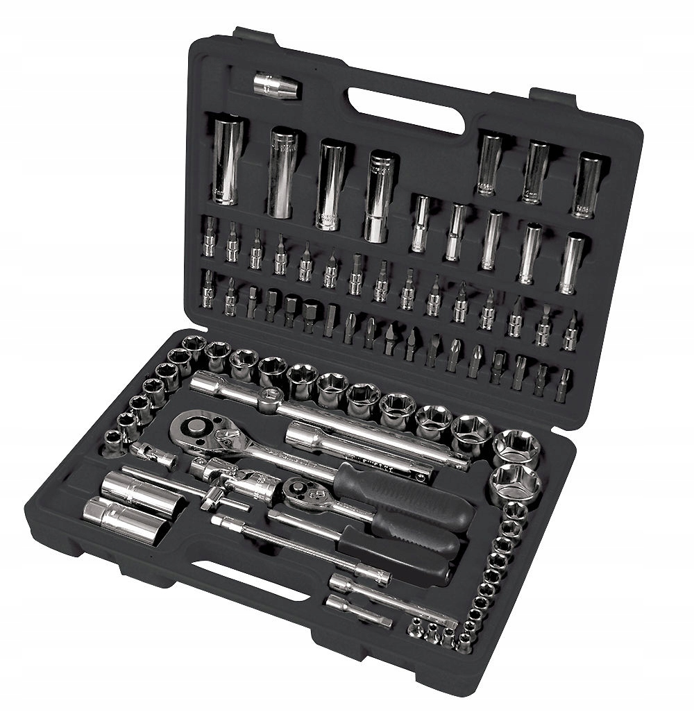 Klucze nasadowe wykonano ze stali chromowo-wanadowej. Zestaw kluczy nasadowych samochodowych.