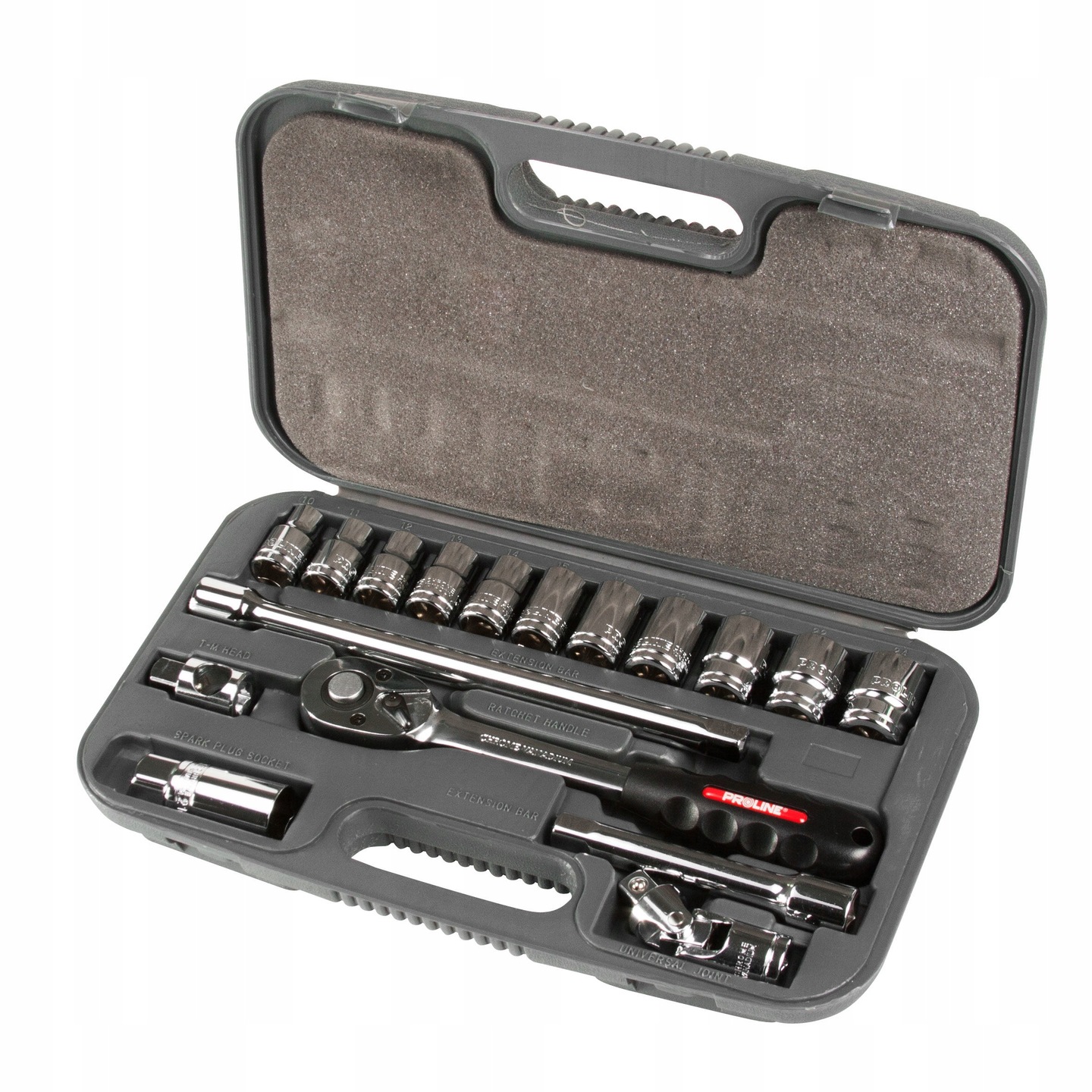 Wyselekcjonowana grupa Proline Tools przeznaczona do profesjonalnego użytku. Właściwości wytrzymałościowe nasadek wyższe od wymagań normy DIN 3124 i PN-ISO 1711. Stal chromowo-wanadowa. Klucze do samochodu chromowane i polerowane