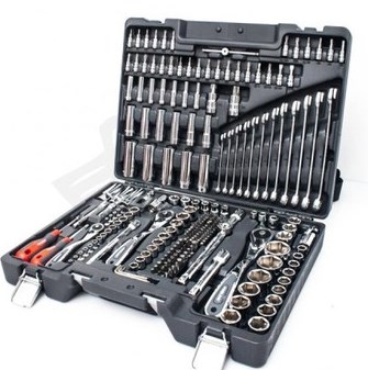 - Kufer na narzędzia wyposażony w metalowe klamry
