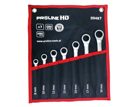 - Zestaw 7 kluczy oczkowo-płaskich z grzechotką w etui