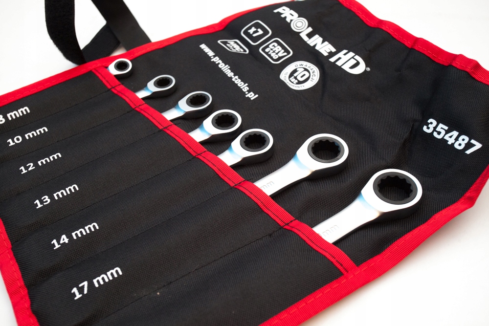 - Zestaw 7 kluczy oczkowo-płaskich z grzechotką w etui