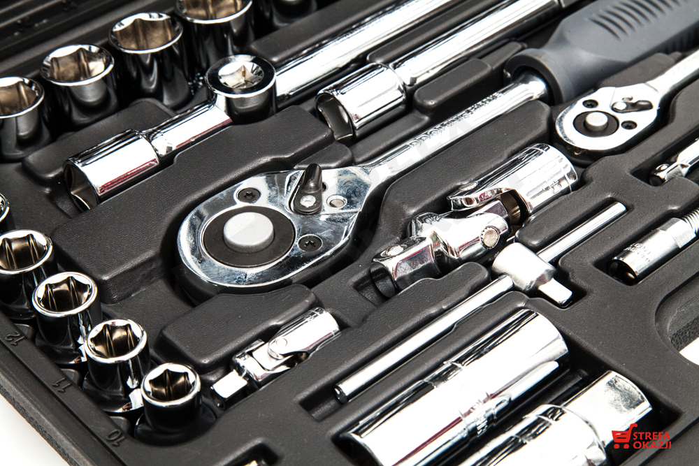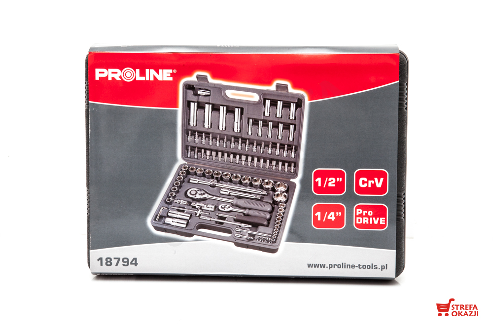 Profesjonalny 94 częściowy zestaw kluczy nasadowych wraz z grzechotkami z bardzo wytrzymałej stali chromowo-wanadowej marki Proline. Przydatne i bardzo użyteczne narzędzia dla każdego majsterkowicza i mechanika. Cały komplet uporządkowany jest w poręcznej walizce.