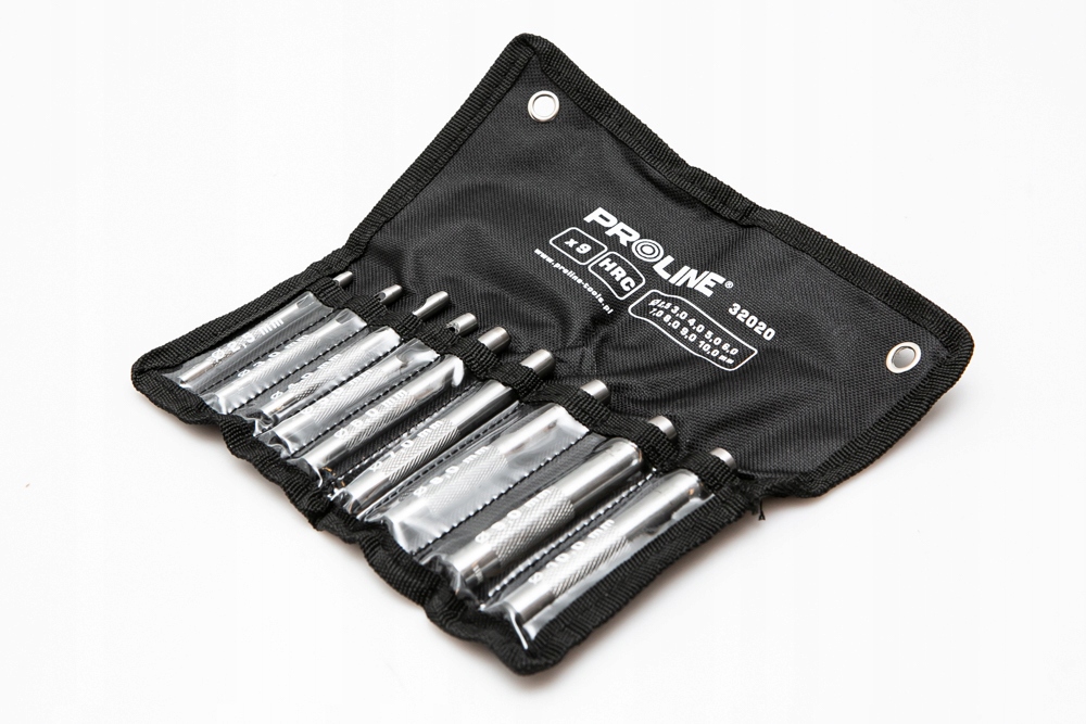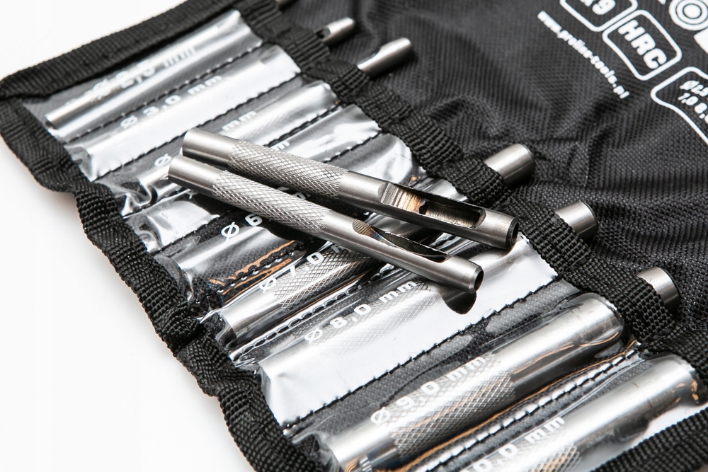 - Zestaw 9 sztuk zawiera przebijaki o średnicach: