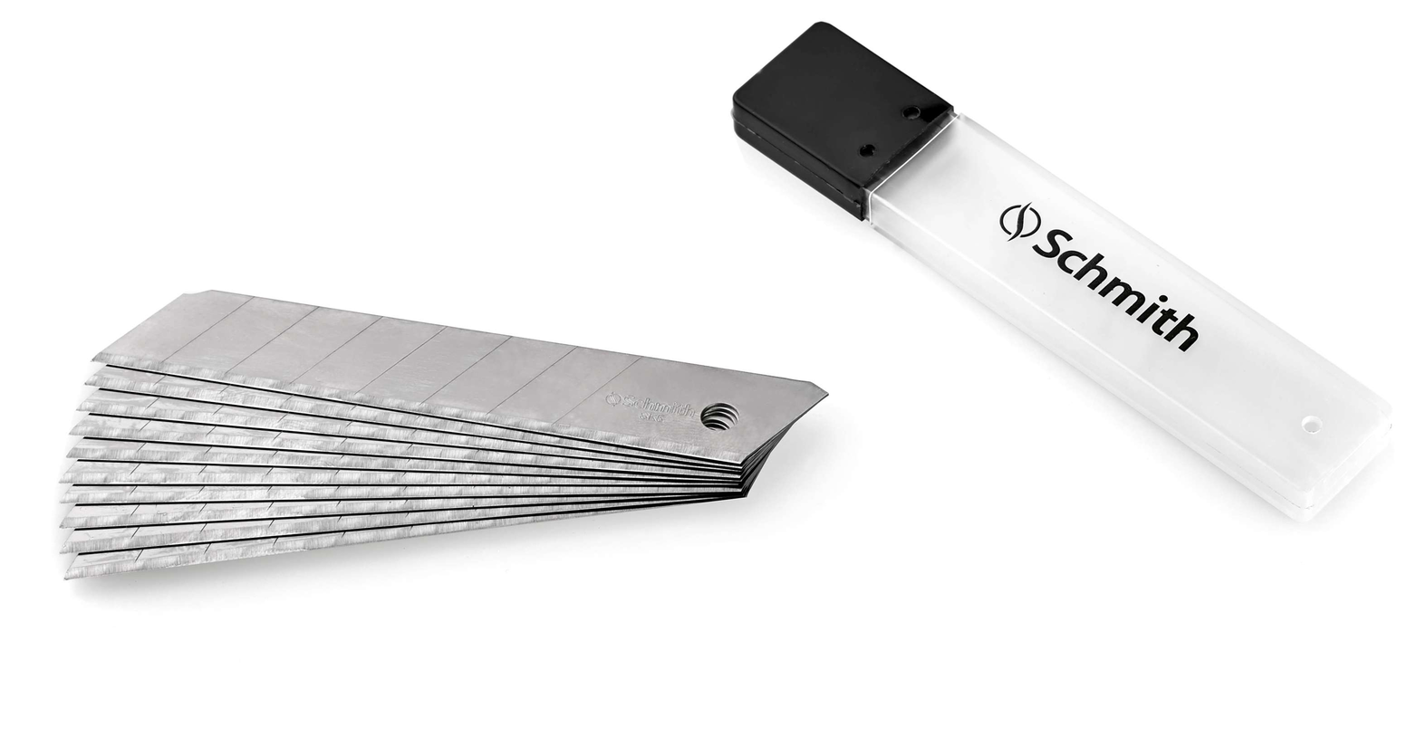 Komplet 10 stalowych ostrzy łamanych stosowanych w nożach wysuwanych. Przeznaczone do cięcia kartonów, tapet, wykładzin, tkanin plandekowych, folii drukarskich oraz folii PCV itp.