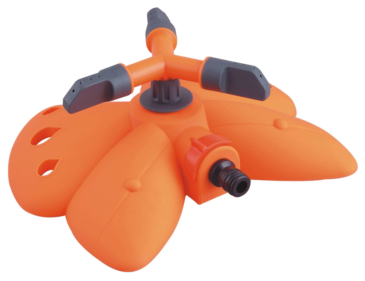 Zraszacz obrotowy 3-ramienny regulowany na podstawie w kształcie motyla. Zraszacz ogrodowy wykonany jest z wysokiej jakości trwałego tworzywa.