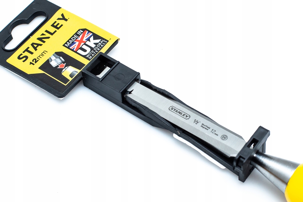 Ergonomiczna bimateriałowa rękojeść - praktycznie niezniszczalna Masywne zakończenie rękojeści Hartowane i szlifowane, ścięte krawędzie boczne Dłuto zgodne z normą ISO