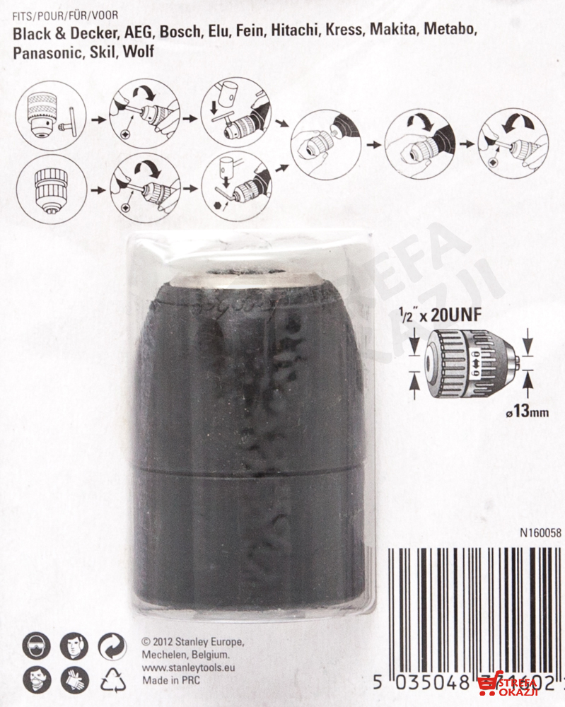Uchwyt samozaciskowy 13mm, 1/2" x 20 UNF, plastikowy, dwutulejowy do wiertarek o maksymalnej mocy 750W.