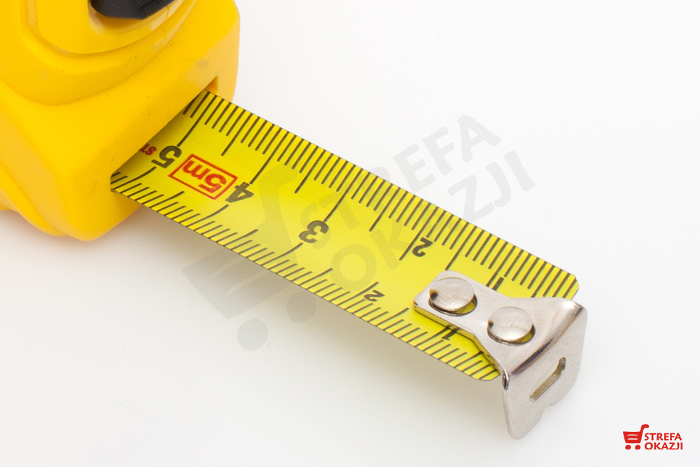 Ergonomiczna obudowa wykonana z tworzywa, odporna na wstrząsy.Zaczep mierniczy na taśmie umożliwia dokładny pomiar wewnętrzny i zewnętrzny.