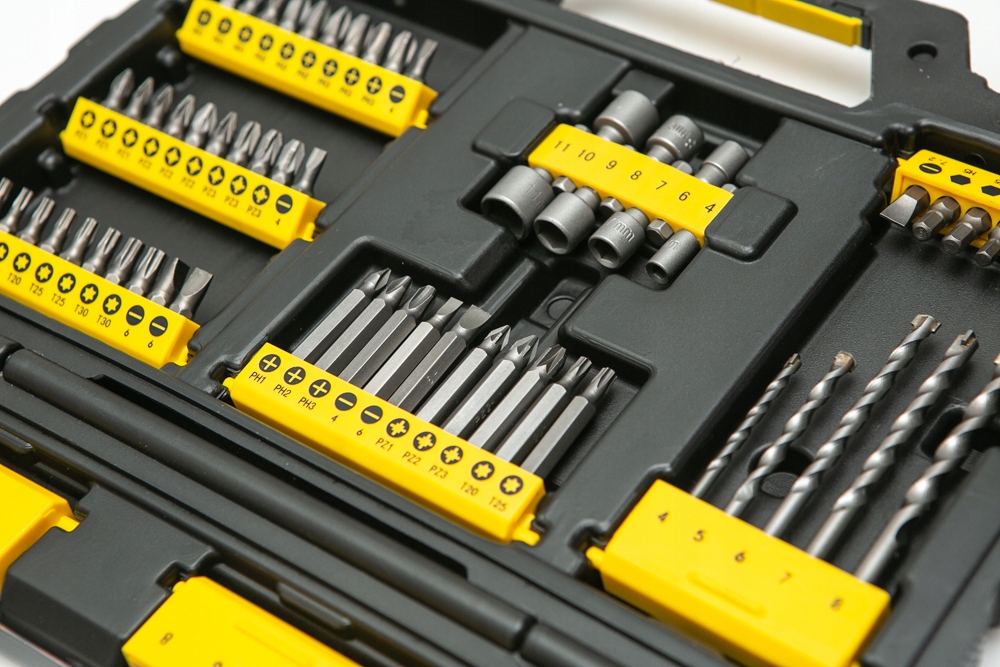 - zawiera szeroki wybór rozmiarów i typów bitów oraz wierteł,