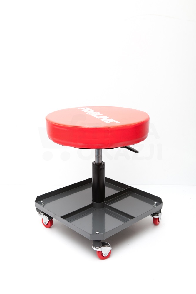 Taborety metalowe warsztatowe Proline posiadają pneumatyczną regulację wysokości.