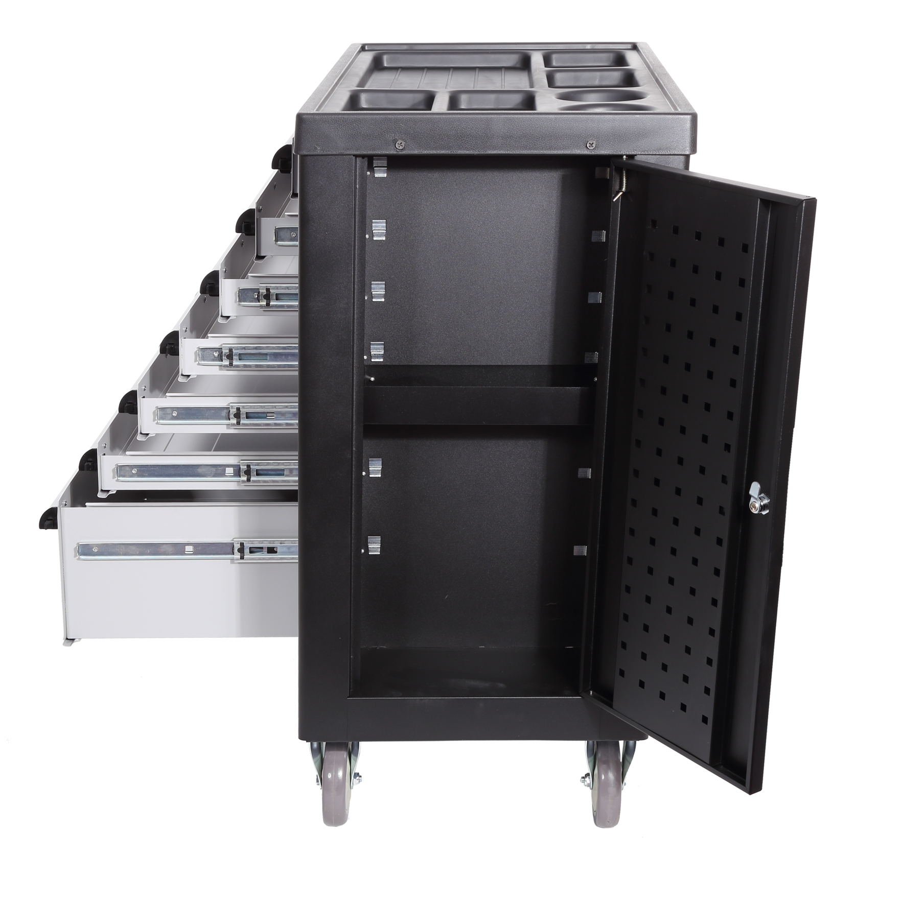 - Siedem wszechstronnych szuflad pozwala na przechowywanie w sposób uporządkowany niezbędnych narzędzi i akcesoriów