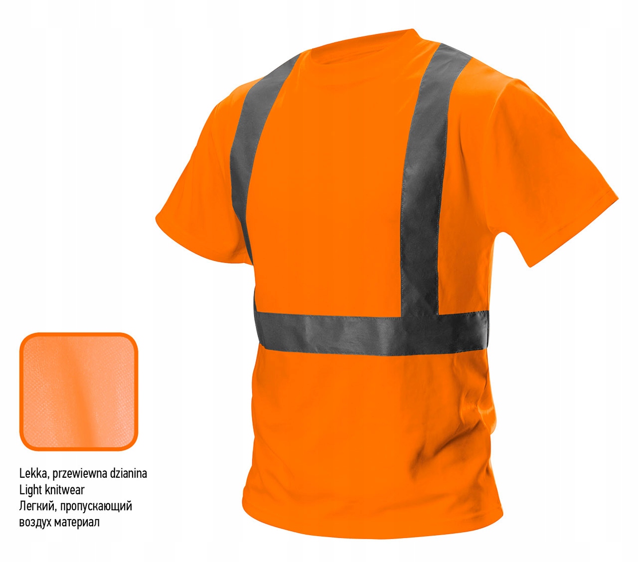 T-shirt roboczy ostrzegawczy NEO (nr ref. 81-733-M) o intensywnej widzialności to praktyczne rozwiązanie zwiększające bezpieczeństwo użytkownika, polegające na sygnalizowaniu jego obecności w każdych warunkach oświetlenia dziennego jak i w ciemności w sztucznym oświetleniu np. światłami pojazdów. Zastosowanie przewiewnego i lekkiego materiału zwiększa komfort użytkownika podczas upałów. Gwarantem jakości jest certyfikat europejski oraz wykonanie zgodne z normą EN ISO 13688:2013. Zgodność z europejskimi standardami bezpieczeństwa zapewnia certyfikat CE. Marka NEO spełnia oczekiwania profesjonalistów.
