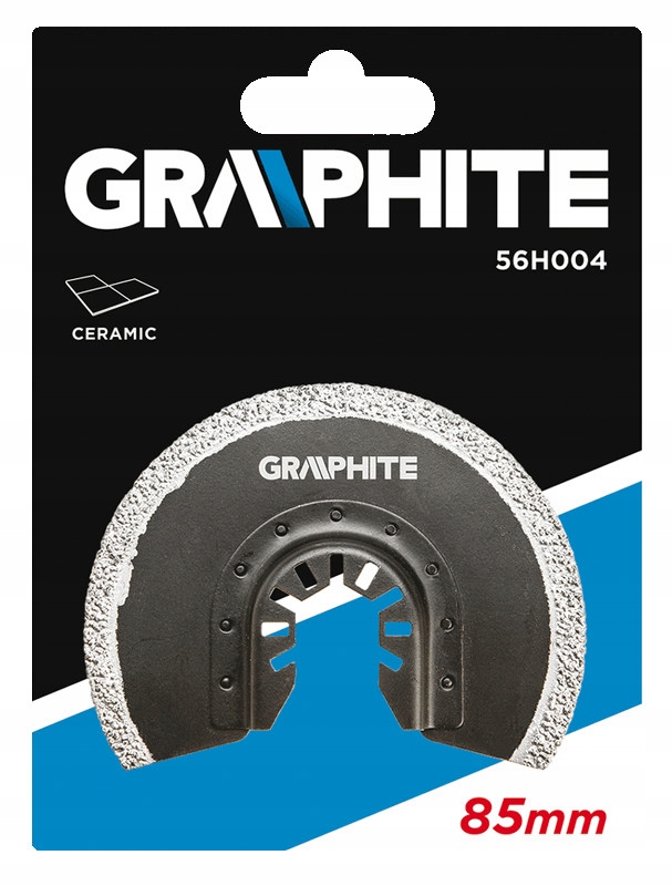 Tarcza półokrągła do cięcia ceramiki GRAPHITE (nr ref. 56H004) o średnicy 85 mm posiada nasyp z węglika wolframu. Pozwala na precyzyjne cięcie płytek ściennych po linii prostej oraz usuwanie fug przy pomocy multinarzędzia GRAPHITE.