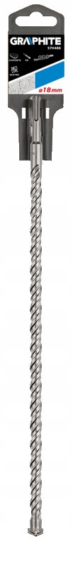 Wiertło do betonu GRAPHITE (nr ref. 57H486) z uchwytem typu SDS+ o średnicy 18.0 mm dzięki krzyżowej końcówce, wykonanej z drobnoziarnistego węglika spiekanego, pozwala wydajnie wiercić otwory w betonie. Podwójna spirala typu S4 zapewnia właściwe odprowadzanie urobku, zabezpieczając wiertło przed przegrzaniem.
