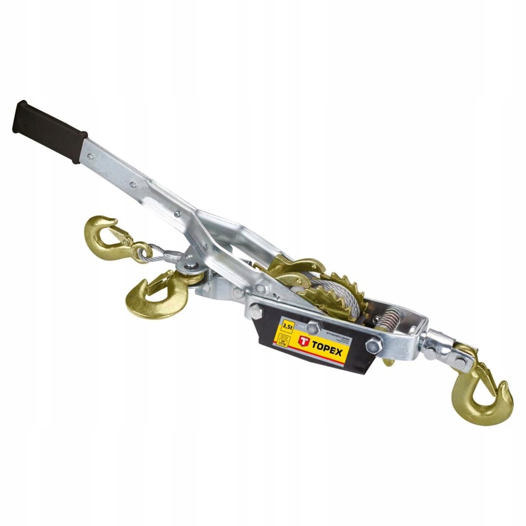 Wyciągarka linowa 3.5 t TOPEX (nr ref. 97X080) przeznaczona do przeciągania przedmiotów, posiada linę o długości 2.5 m oraz hamulec zapadkowy. Doskonale sprawdzi się na budowie, w warsztacie i jako wyposażenie gospodarstwa rolnego. Maksymalne obciążenie 3.5 t. Wyrób oznakowany znakiem CE, potwierdzającym zgodność z dyrektywami bezpieczeństwa. Marka TOPEX skierowana jest do majsterkowiczów.