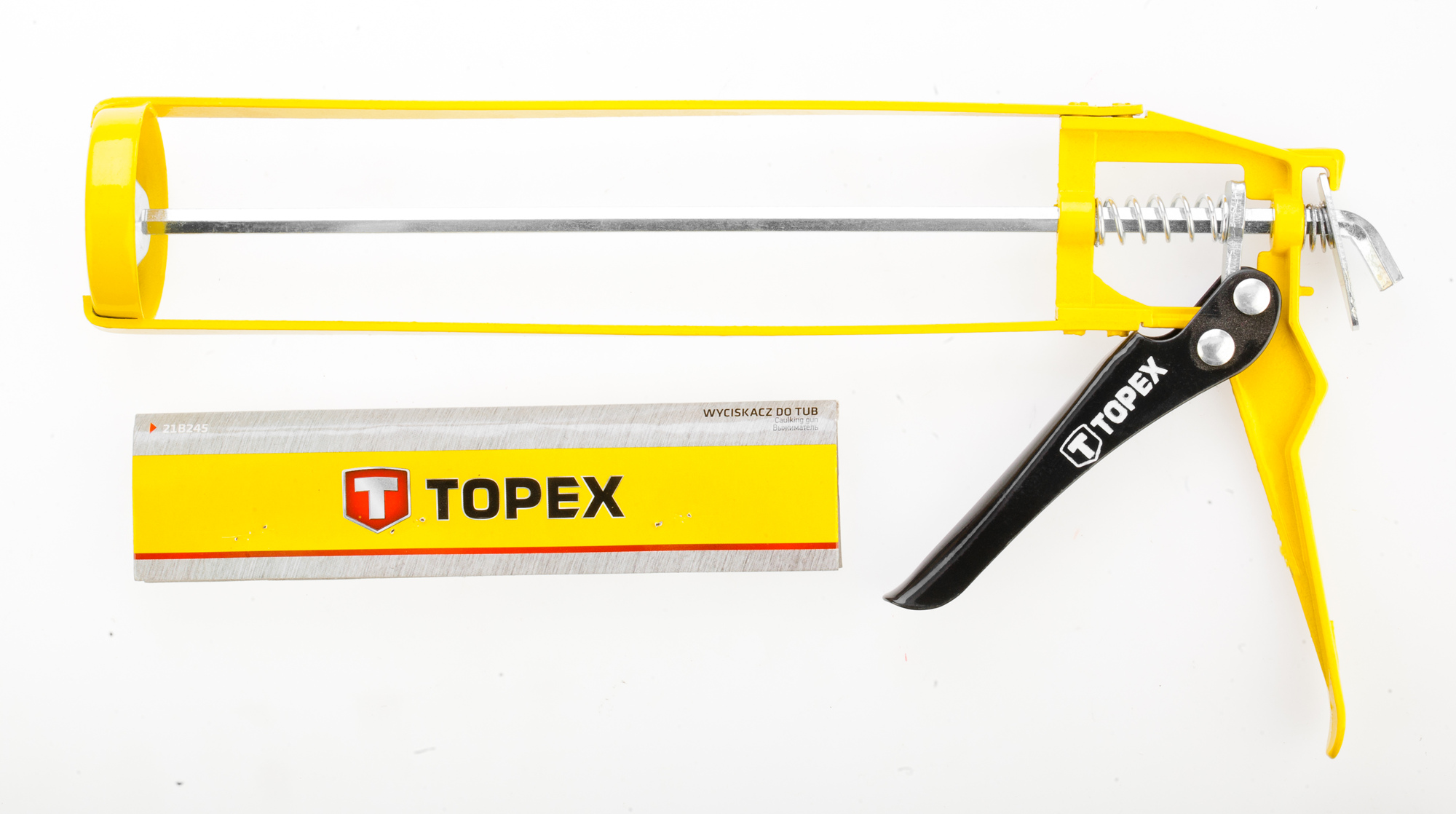 Wyciskacz do tub z silikonem TOPEX (nr ref. 21B245) o konstrukcji ramowej. Znajduje zastosowanie podczas prac remontowych i wykończeniowych. Korpus oraz spust wykonane z mocnej stali. Pokrycie lakierem zabezpiecza przed uszkodzeniami. Marka TOPEX skierowana jest do majsterkowiczów.