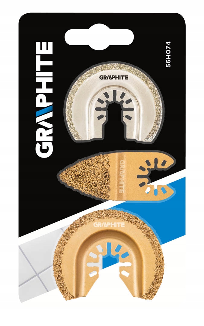 Zestaw brzeszczotów do ceramiki GRAPHITE (nr ref. 56H074), 3 szt. Pozwala na precyzyjne cięcie płytek ściennych po linii prostej oraz usuwanie fug przy pomocy multinarzędzia GRAPHITE.